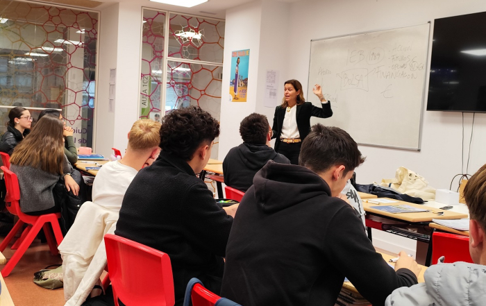 Con el objetivo de acercar a los jóvenes conceptos clave sobre el mundo financiero y la gestión económica personal, la jefa de estudios de IEB, Ana Moreno Giraldo, impartió una charla al alumnado de 2º de Bachillerato de la asignatura Empresa y Diseño de Modelos de Negocio del colegio Kostka de Santander. Gracias a ella, los estudiantes pudieron adquirir una comprensión más clara sobre cómo tomar decisiones financieras responsables y prepararse para los desafíos económicos futuros.