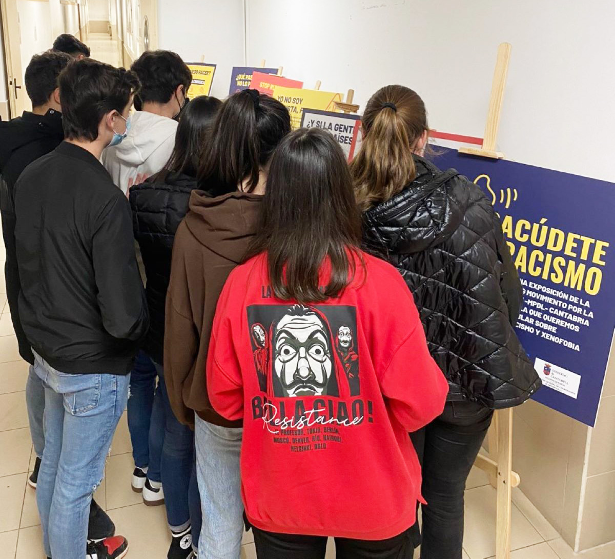 Estudiantes visitando la exposición ‘Sacúdete el racismo’ durante su hora de tutoría.