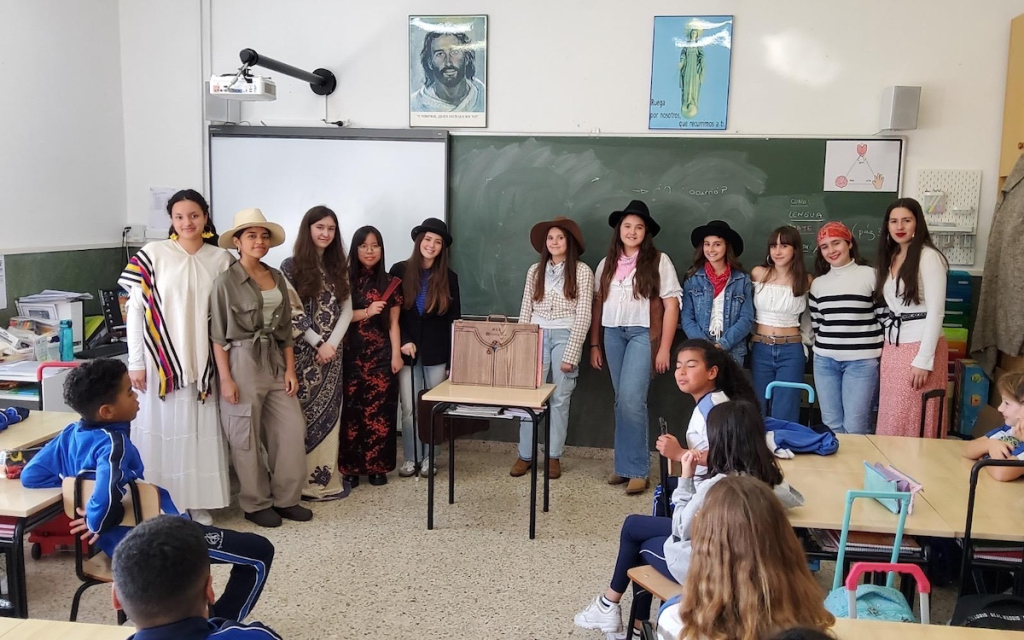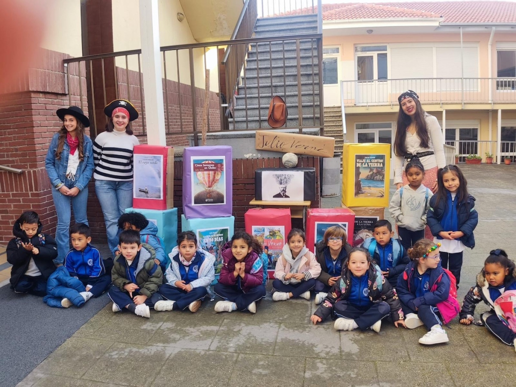 Este año, la actividad organizada por el equipo de ayudantes de Biblioteca se ha centrado en la novela ‘La vuelta al mundo en ochenta días’. Las alumnas de Secundaria han relatado el libro al alumnado de Infantil y Primaria con el método japonés llamado kamishibai, que utiliza ilustraciones para acompañar el relato. Esta técnica originaria del siglo XII permite que los más pequeños comprendan la novela a través de imágenes que despiertan su creatividad y curiosidad.