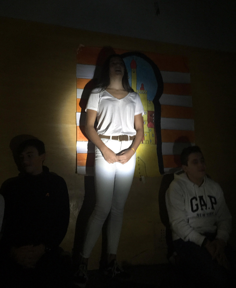 En segundo lugar, formamos un grupo cooperativo encargado de cada fragmento. A continuación, nos encargamos de la creación de decorados y el manejo de telones negros sencillos. Y lo último, y más importante, el monólogo o breve diálogo sacado de la obra y representado por los estudiantes, vestidos de blanco o de negro.