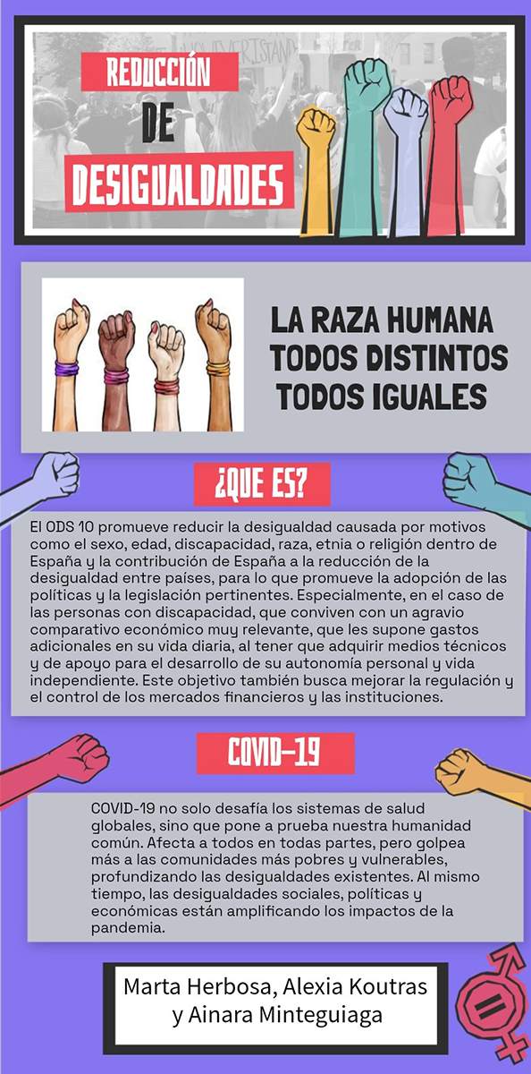 Imagen/folleto en el que se presenta el Objetivo 10 ‘Reducción de las desigualdades’ y la respuesta a la Covid-19.