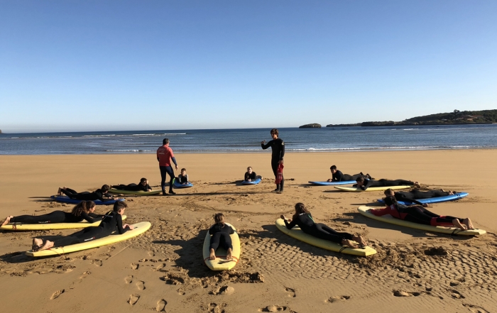 La playa de Oriñón fue el escenario elegido por los estudiantes de 2º de ESO del IES Ataúlfo Argenta para practicar surf y paddle surf.