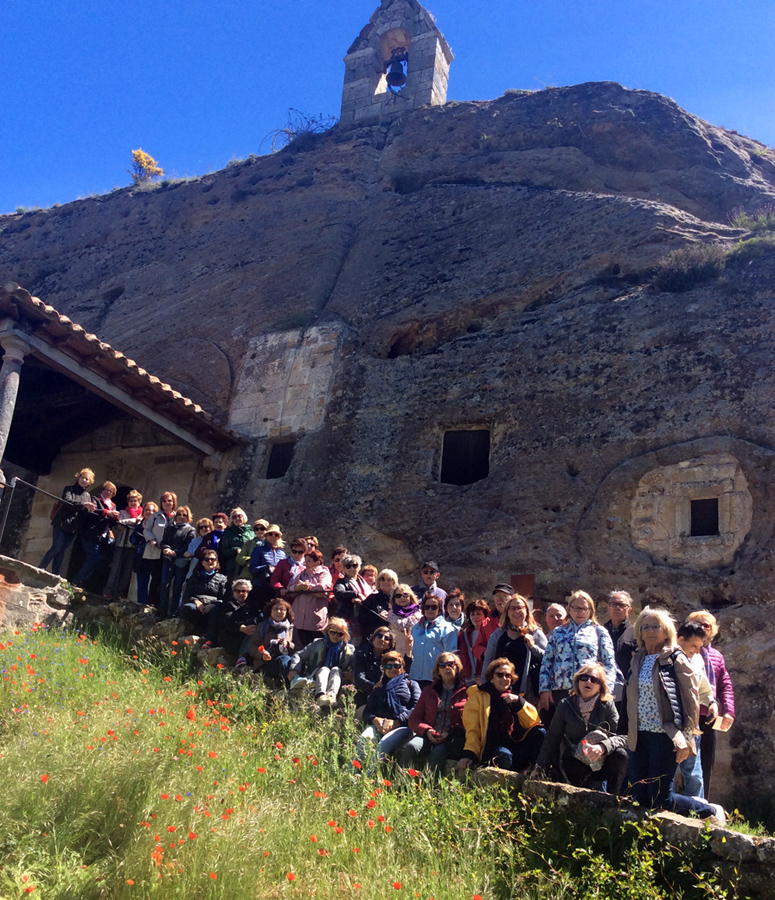 Foto de grupo en Olleros de Pisuerga, junto a la iglesia rupestre de los Santos Justo y Pastor.