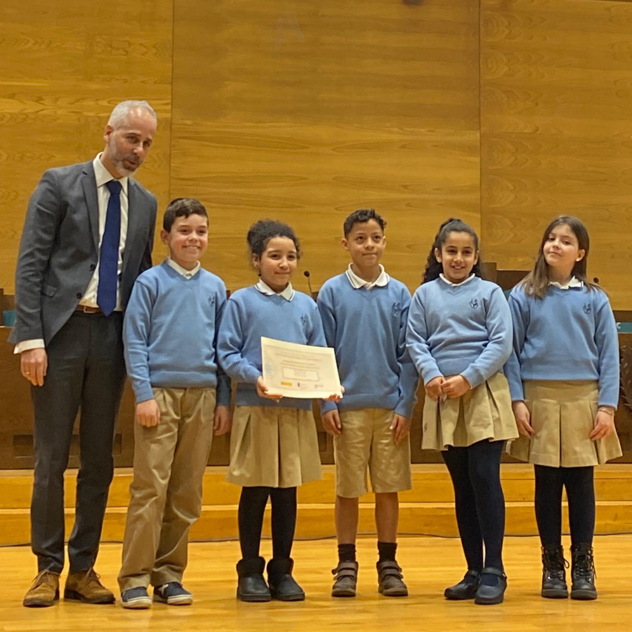 Diego Fernández, Paula Fernández, Gabriel Quintero, Alana Ventoso y Concepción y Keishy Martínez Cabrera. 4º de Primaria del CC Sagrados Corazones (Torrelavega).
