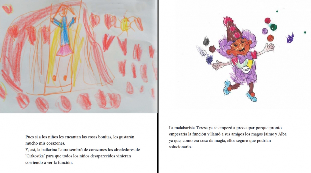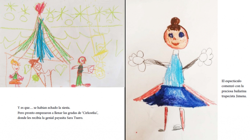 La labor continúa en casa de la mano de las familias, que recogen de buen grado esas propuestas y con cada niño las llevan a cabo. Pues bien, fruto de este trabajo que han tenido que asumir sin más remedio surgen propuestas como ‘Cirkostka’, cuento colaborativo basado en la temática del último proyecto que se realizó en las aulas sobre el circo.