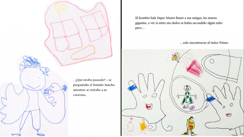 Las tutoras enviaron a la familia que propuso el cuento colaborativo la información necesaria y, con los dibujos de los niños ordenados secuencialmente, esta familia ha creado una historia y la ha maquetado para que cada uno pueda leer en casa el cuento que entre todos han ilustrado. Este es el resultado.