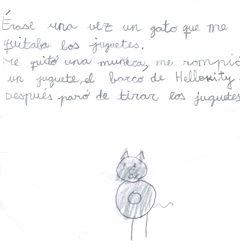 Érase una vez un gato que me quitaba los juguetes. Me quitó una muñeca, me rompió un juguete, el barco de ‘Hello Kitty’. Después paró de tirar los juguetes.
