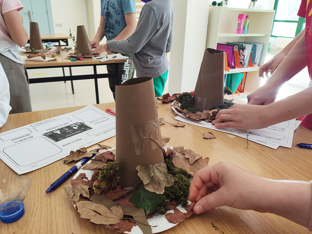 3º- Decorar el cono para que parezca un volcán: con hojas, palos y musgo.