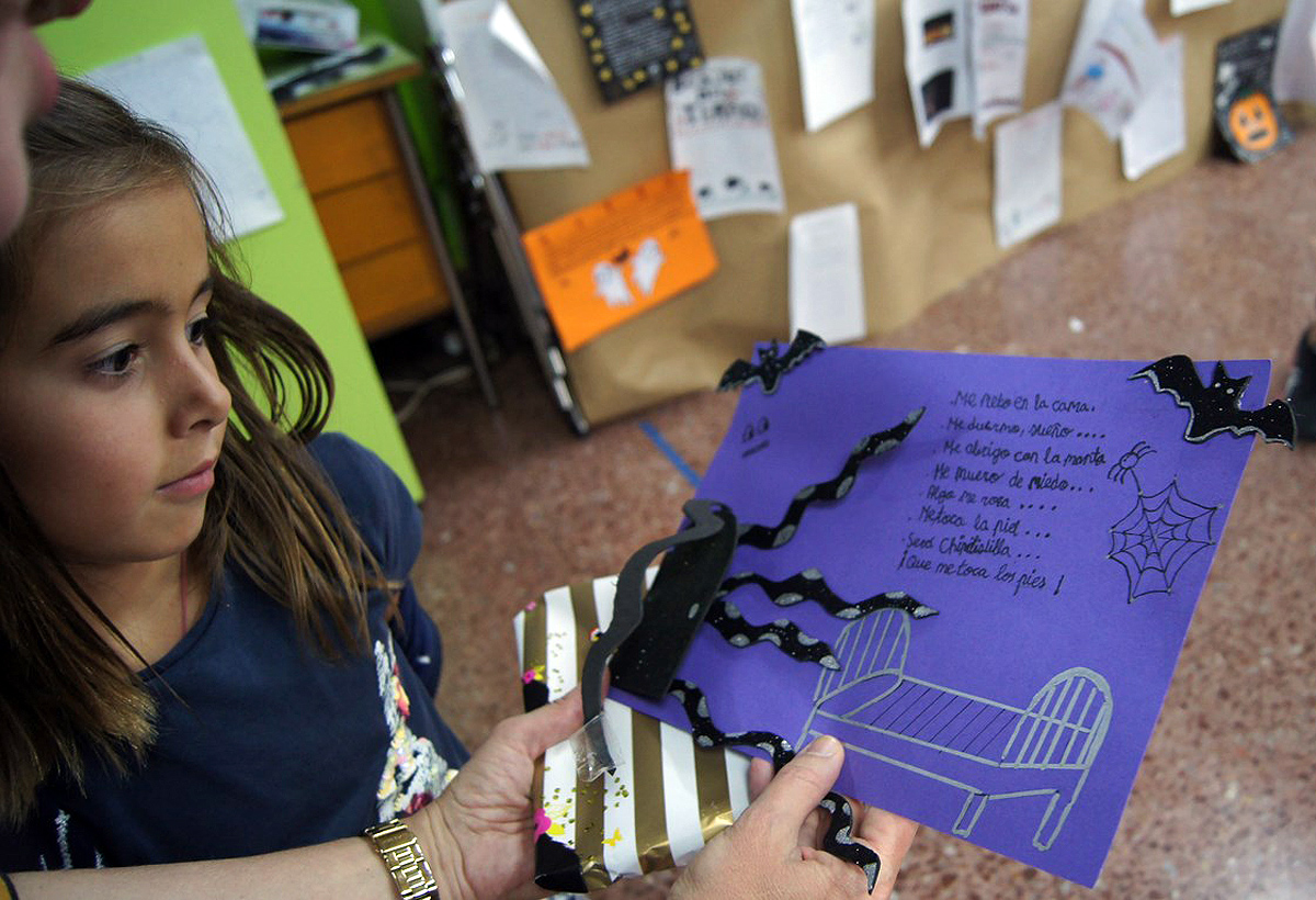 El CEIP Arturo Dúo aprovechó Halloween para organizar una actividad internivelar en la que participó el alumnado de diferentes cursos. Así, los escolares crearon relatos sobre esta terrorífica celebración y luego los leyeron en la biblioteca a sus compañeros.