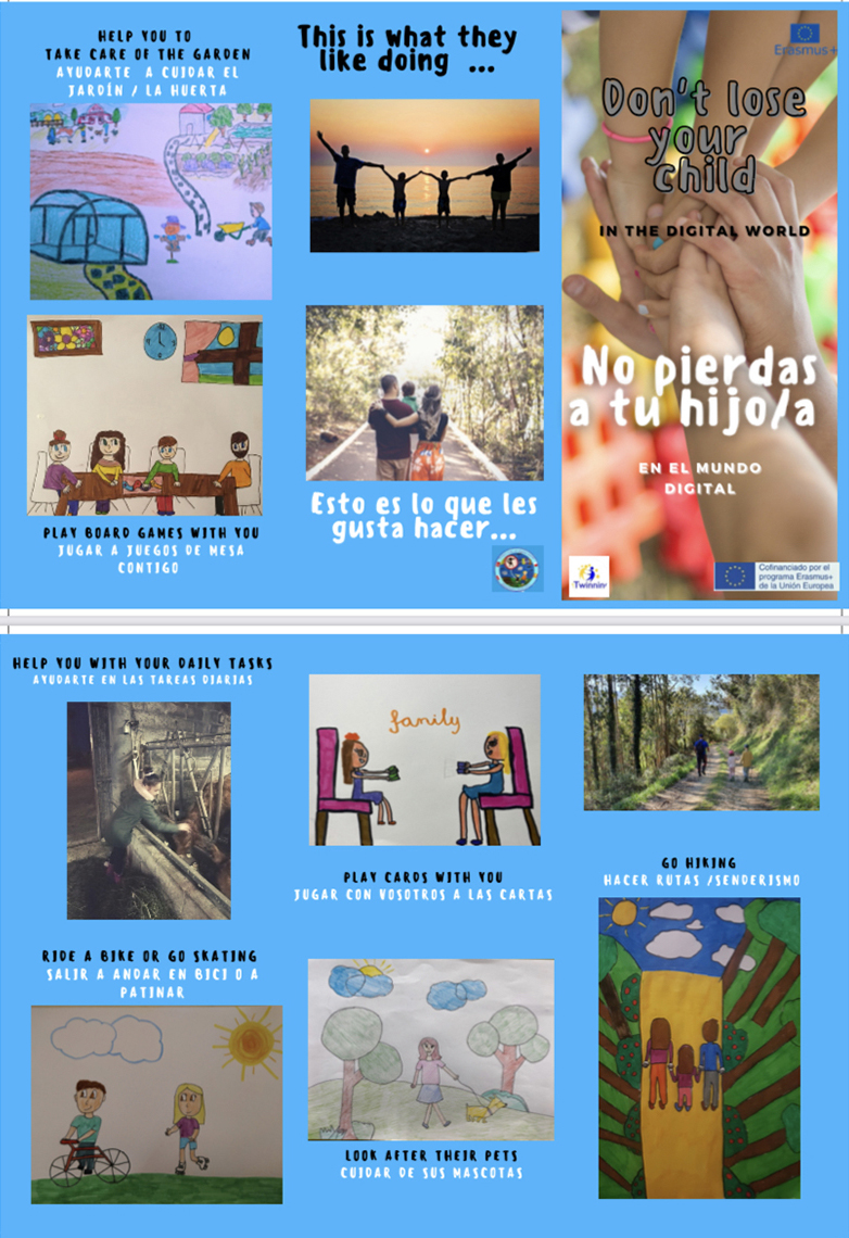 Para concienciar a los mayores de la importancia que tiene alejarse un poco de la tecnología para evitar futuros problemas, el alumnado ha propuesto en las aulas actividades que les gusta realizar en familia y con todas ellas han realizado un tríptico que les ha quedado fantástico. Además, los más mayores hicieron sus propios folletos con consejos para una correcta utilización de las redes sociales por parte tanto de mayores como de jóvenes. Han aprendido mucho durante estas actividades y han compartido con sus familias unos ratos muy valiosos mientras trabajaban en el proyecto.